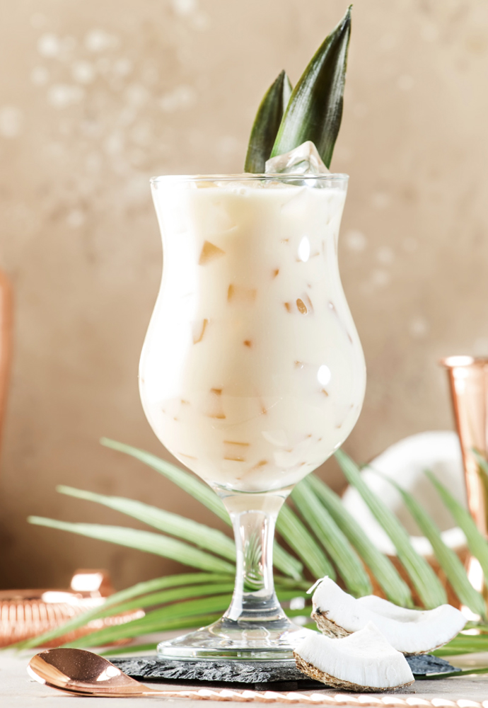 Combine OATRAGEOUS Dairy Free Coconut & pineapple juice and 1 cup of ice in a blender. Blend until well combined. Add more ice if desired. Pour into a glass. Garnish with a pineapple frond/wedge and cherry. Top with 1 oz of Misunderstood Ginger Spiced Whiskey (optional).